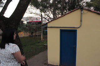 Mas, o curioso é que há uma casinha, bem parecida com uma senzala, do lado de fora. É estranho, mas segue o baile.